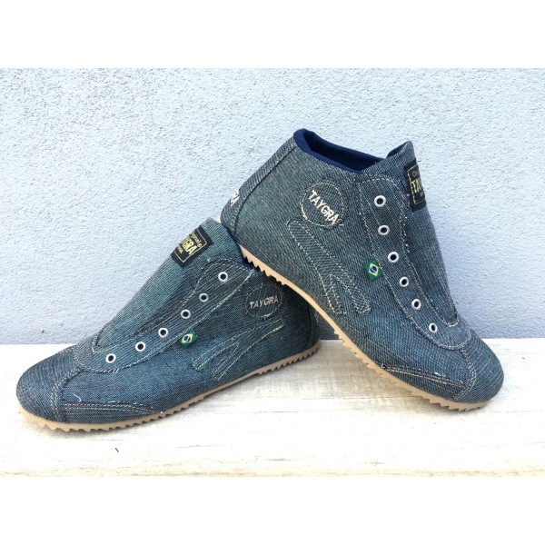 Botinha de teçido Jeans com fios dourados
